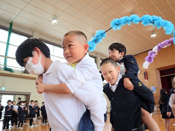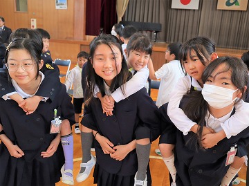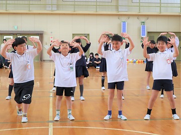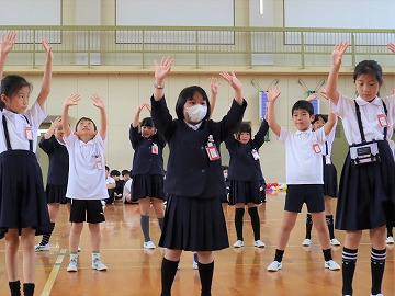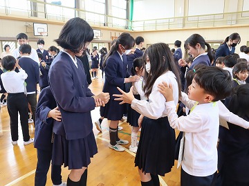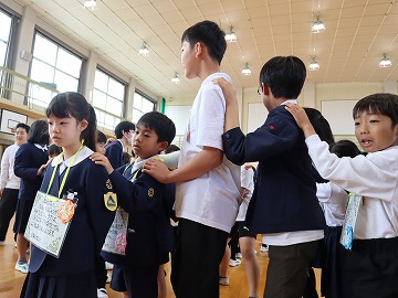 そして、全校で校歌を歌った後、「勝幡列車(じゃんけん列車)」で全校で交流しました。