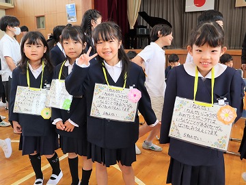 1年生も「おねがいします」を唱和しました。最後は6年生と退場しました。