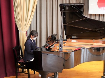 子供たちの手作りのアレンジフラワーのプレゼントに、これまでの感謝の気持ちを添えた後、合唱を披露しました。