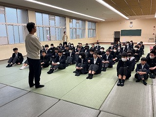 410日5時間目に、3年生になって初めての学年集会が行われました。学年担当の先生から、学習・生活・進路などの話に真剣な様子で耳を傾ける姿が見られました。今の決意を忘れず、充実した1年になるよう、全員で一丸となってがんばりましょう。